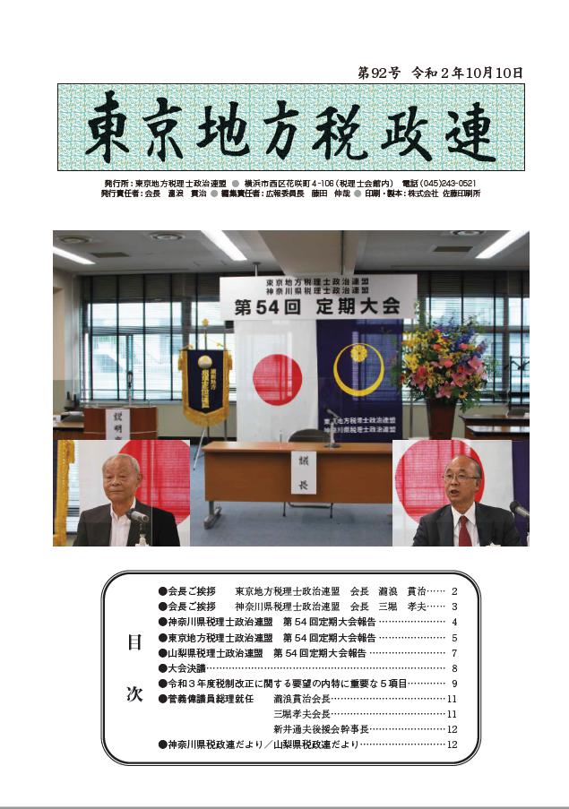 2020年10月10日 / 最終更新日 : 2022年9月27日 admin_knots 広報誌等 機関紙「東京地方税政連」第92号 ※画像をクリックするとPDFが開きます。 第92号(令和2年10月10日)