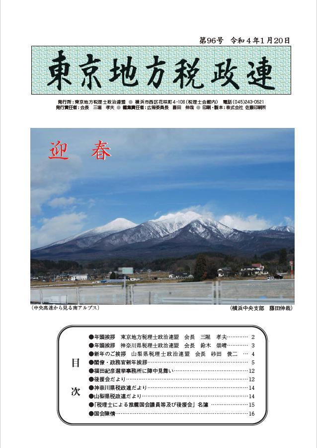 2022年1月20日 / 最終更新日 : 2022年9月27日 admin_knots 広報誌等 機関紙「東京地方税政連」第96号 ※画像をクリックするとPDFが開きます。 第96号(令和4年1月20日)
